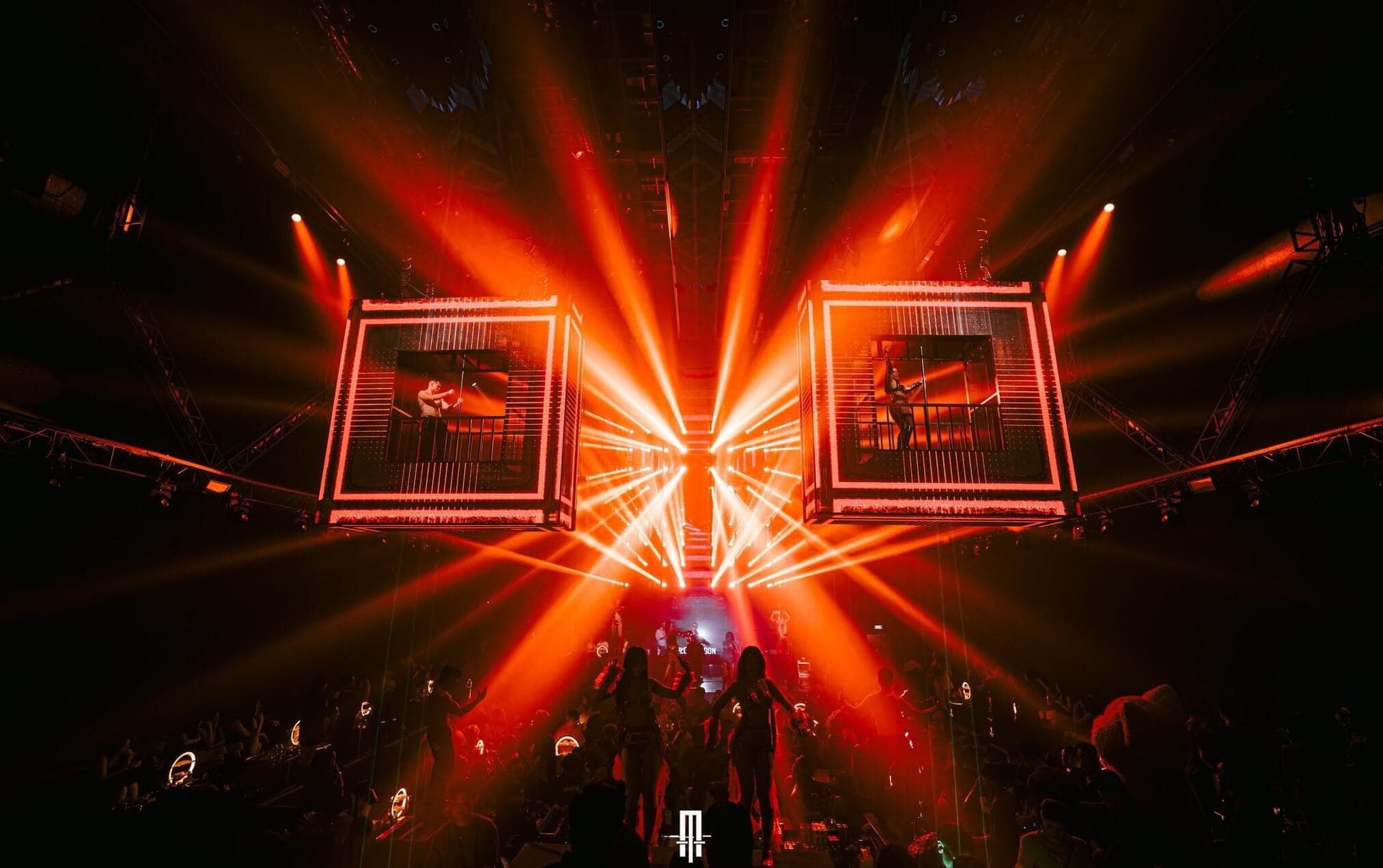 Hệ thống LED concert-grade, pyrotechnics, CO2, confetti. Âm thanh vòm chuyên nghiệp cho trải nghiệm đỉnh cao.